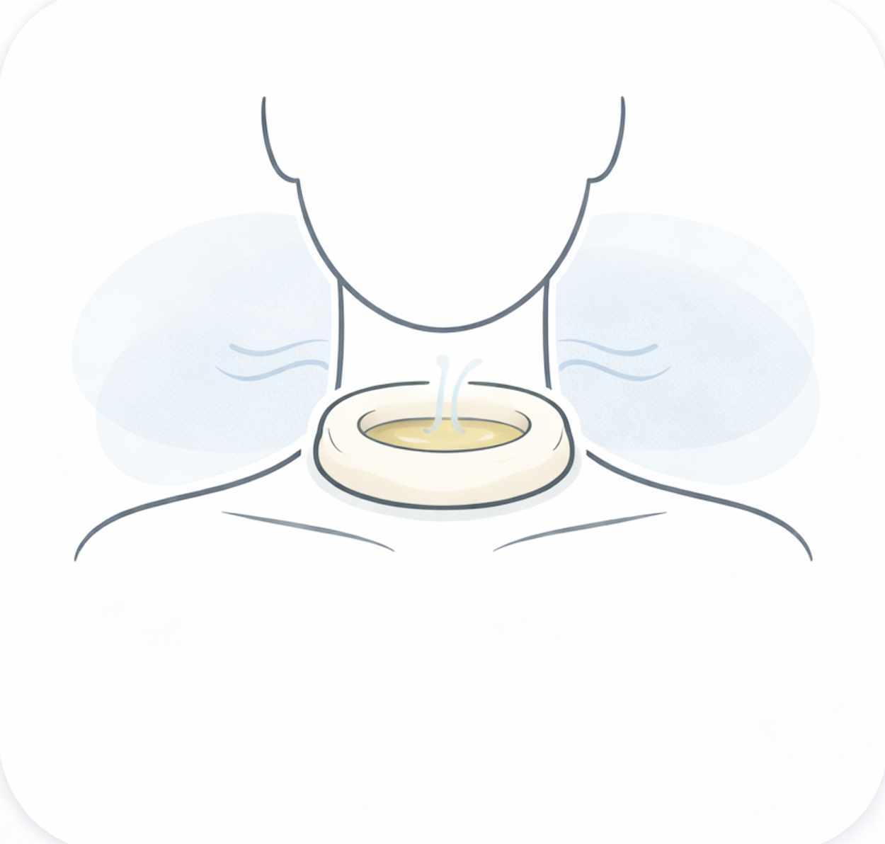 Gentle warm oil pooling at the throat and neck to encourage softness, circulation, and balanced tension in this sensitive region.